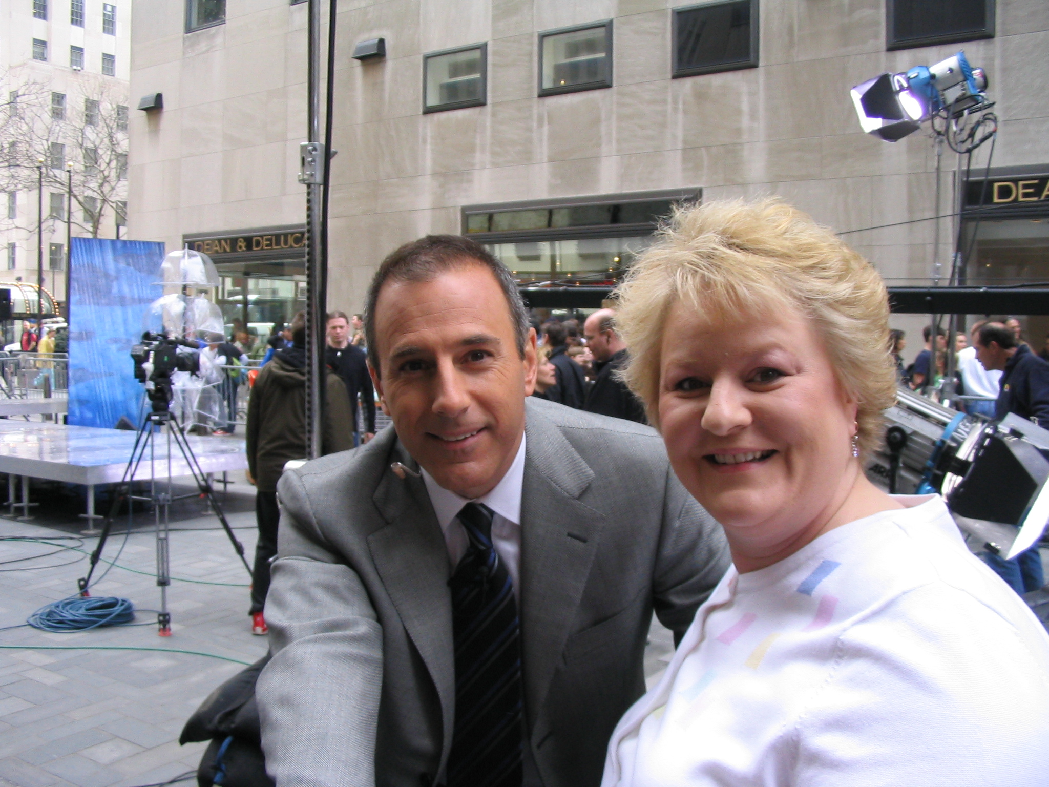 April, 2005. Angie celebrating her 40th birthday in NYC. Meeting Matt Lauer outside the Today Show.